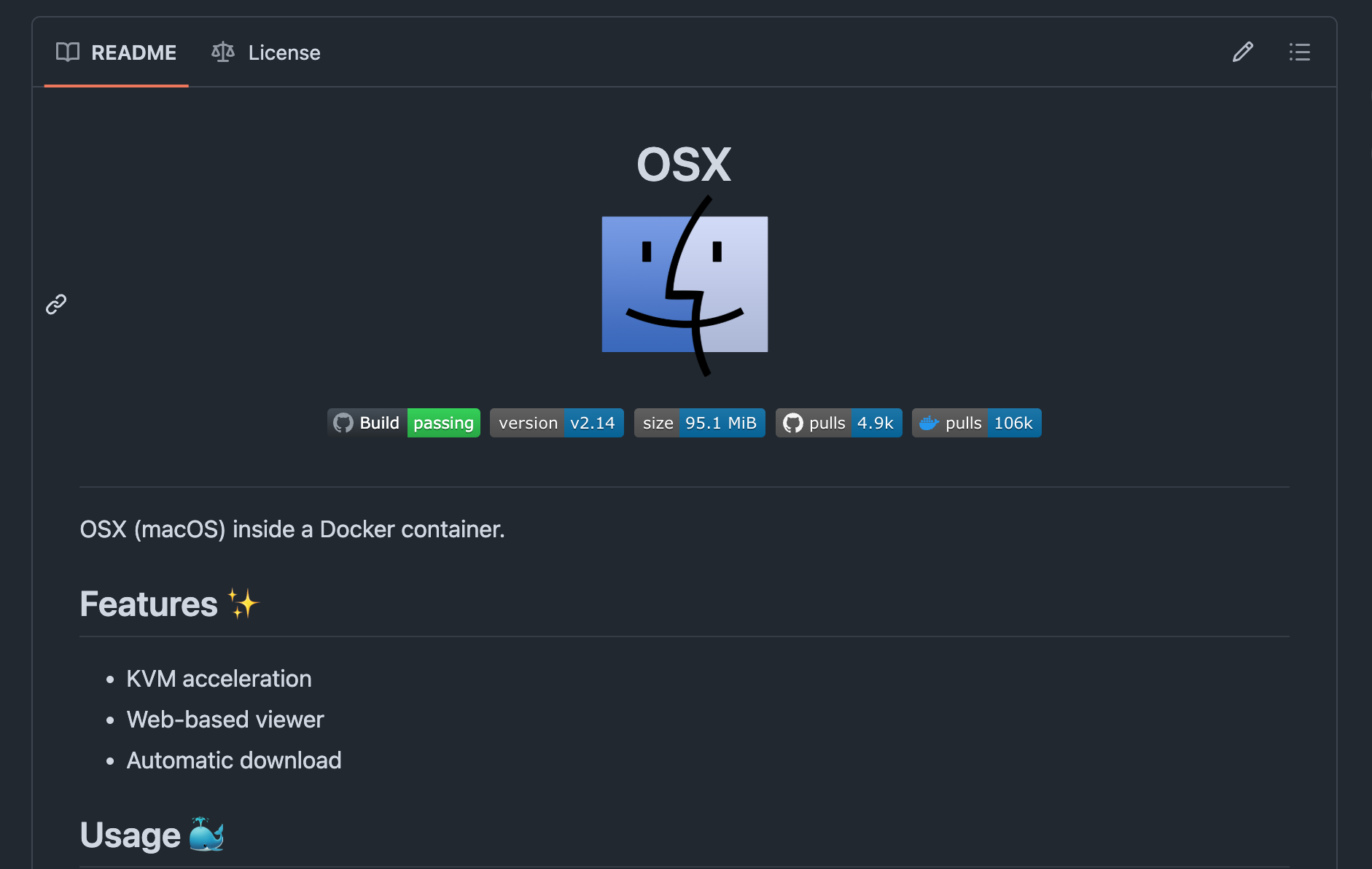 docker run -it -d --restart=always --rm --name macos -p 8006:8006 --device=/dev/kvm --device=/dev/net/tun --cap-add NET_ADMIN -v "${PWD:-.}/macos:/storage" --stop-timeout 120 dockurr/macosCode language: JavaScript (javascript)