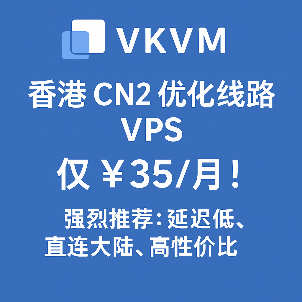 🔥 强烈推荐:VKVM 香港 CN2 优化线路 VPS,仅 ¥35/月!