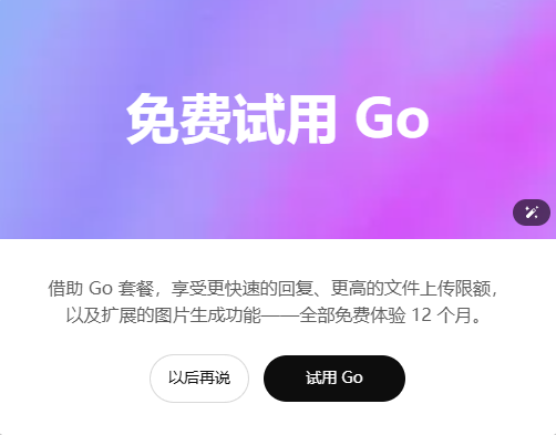 第一步、先选全局代理印度梯子🇮🇳登录你的ChatGPT账号,这个时候应该就能自动弹出“免费使用Go”的界面,如下图